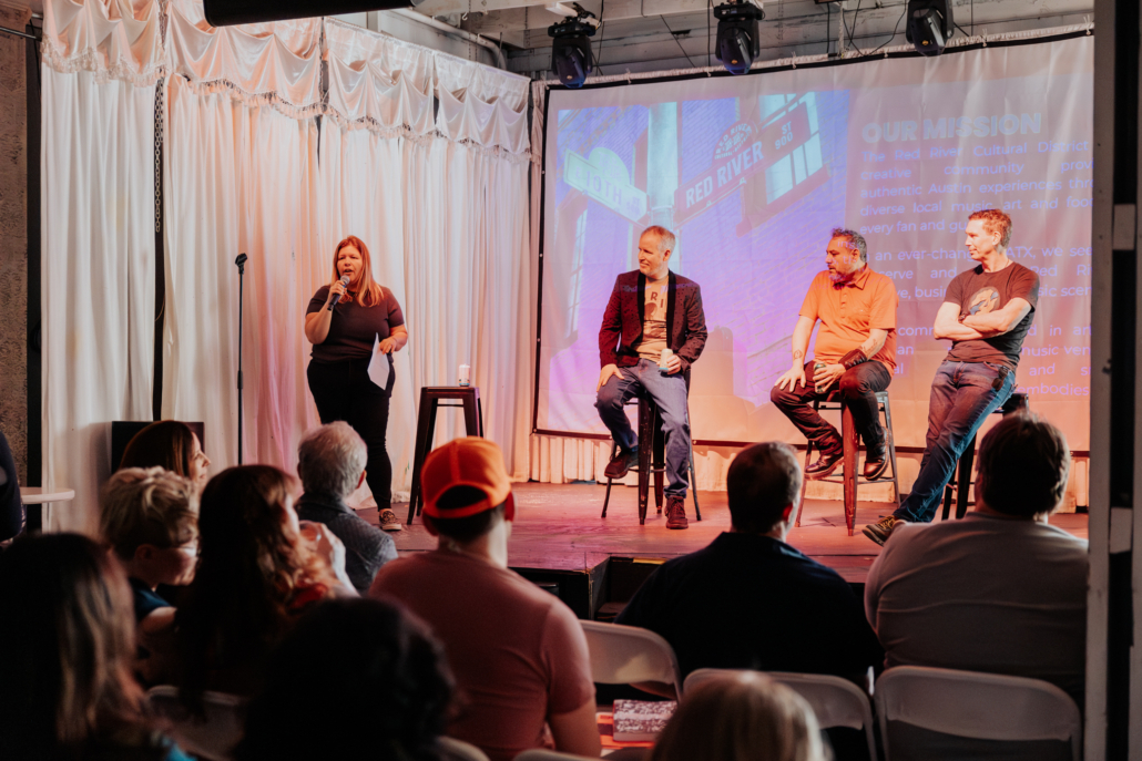 A special Hot Summer Nights–edition of District Dialogues featuring community conversations centered on Austin’s live music industry, artist support systems, and the Red River Cultural District.